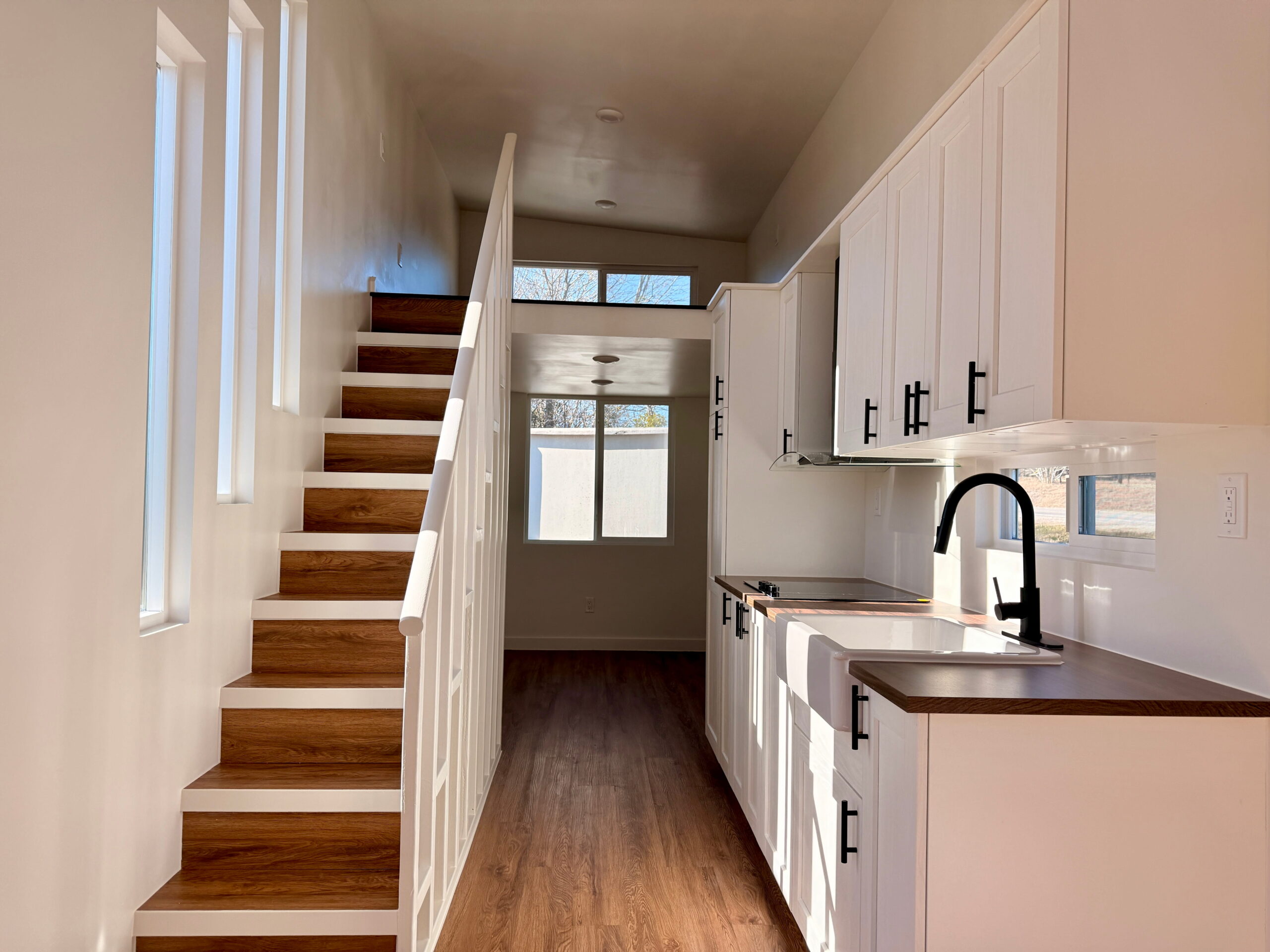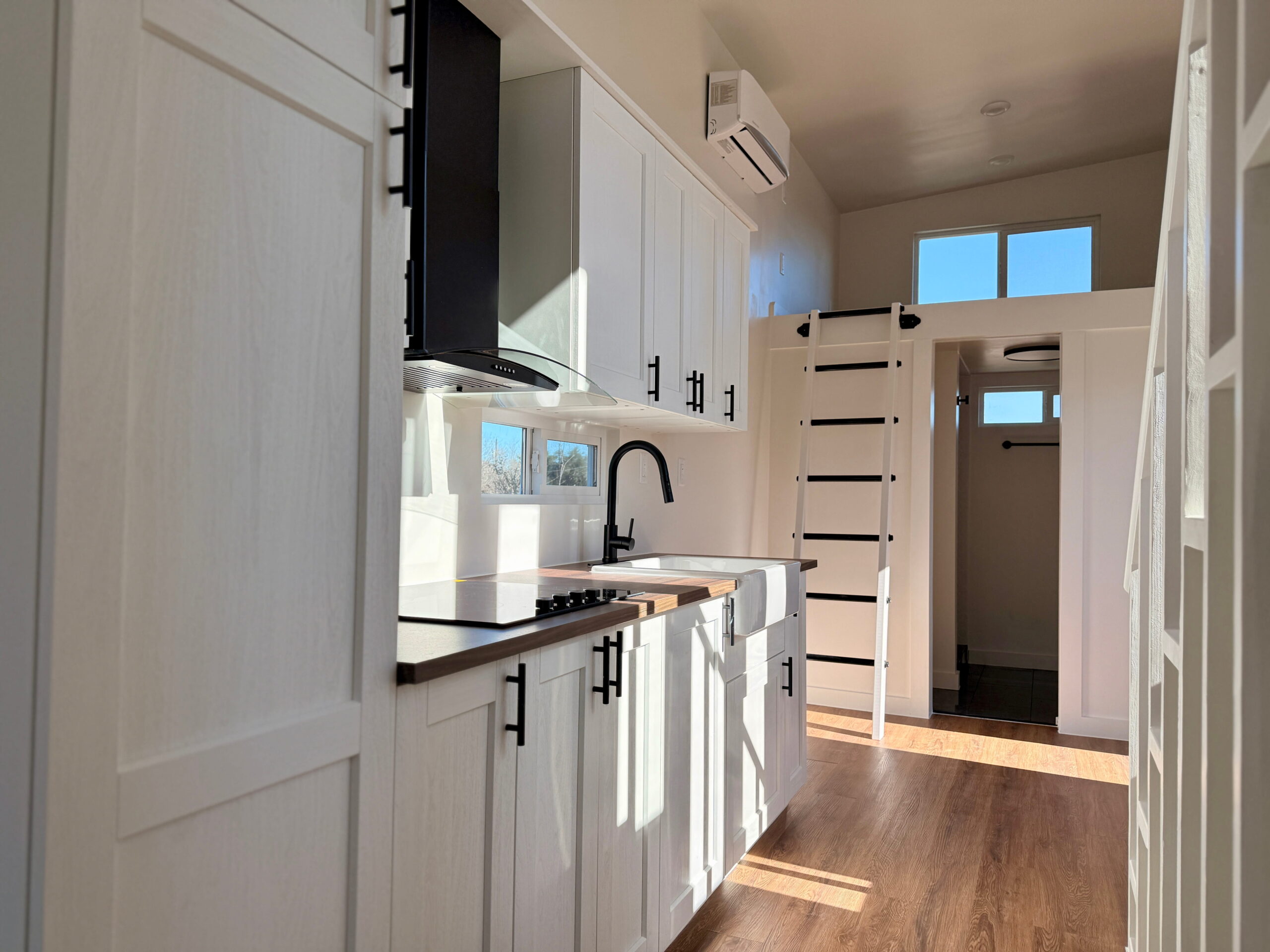 The Strata Tiny Home has layered, multi-level spaces with a strong foundation. If you appreciate well-defined and organized spaces that still feel interconnected and spacious, the Strata is an ideal choice for you!